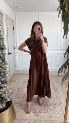 Introducing our Round Neck Casual Pleated Dress, designed for the modern woman who values sophistication and style. Perfect for any occasion.